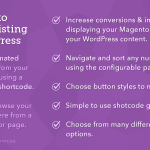 Magento Shortcodes for WordPress allows you to display Magento products, layout blocks, and static blocks in your WordPress site using shortcodes.